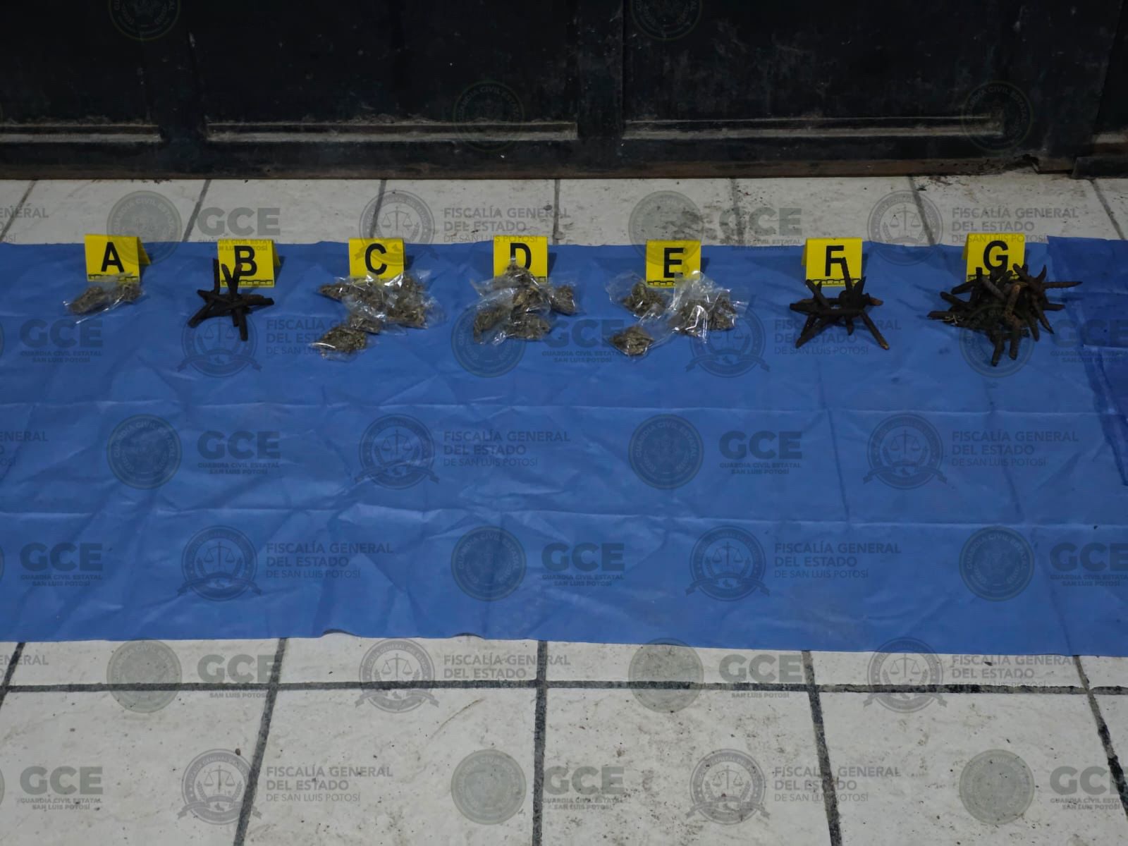 Como resultado de labores coordinadas, la Secretaría de Seguridad y Protección Ciudadana del Estado (SSPC), a través de la Guardia Civil Estatal (GCE), en conjunto con la Fiscalía General del Estado (FGE), ejecutó una orden de cateo en Ciudad Valles, donde se aseguraron alrededor de 154 kilogramos de hierba seca con características de la marihuana, artefactos conocidos como “ponchallantas”, básculas grameras y material diverso.