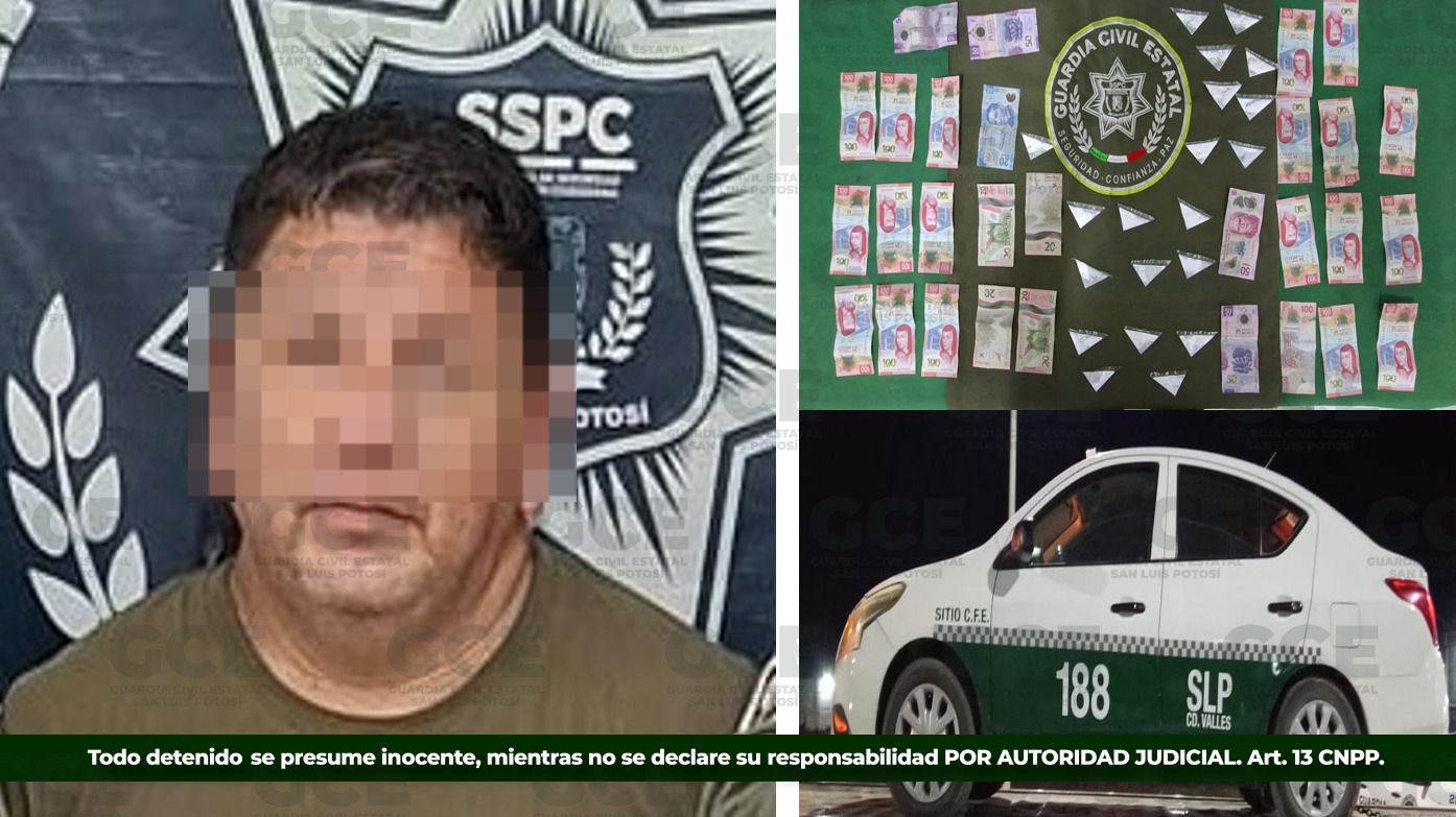 Como muestra de ello, se refleja en los resultados obtenidos en las últimas 24 horas, en el municipio de Ciudad Valles, en donde un hombre, considerado como probable objetivo generador de incidencia en la región, resultó detenido por la Guardia Civil Estatal, tras el aseguramiento de 20 dosis de cocaína a bordo de un taxi.