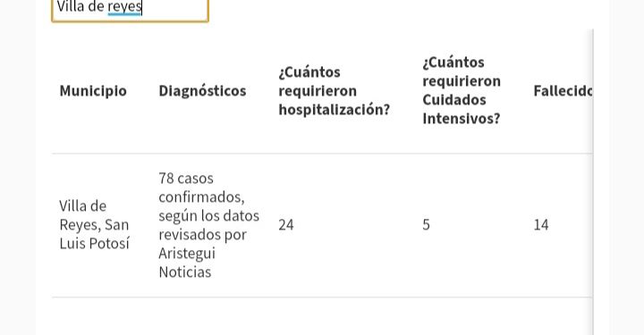 Cabe mencionar, que el municipio de Santa María del Río, con fecha del pasado 11 de agosto acumulaba 102 casos positivos, y 12 defunciones; para el pasado 19 de agosto, contabilizó 121 nuevos contagios y 16 defunciones. En las cifras emitidas esta última fecha a través del portal de Aristegui Noticias el número total de contagios es de 124 pacientes, 18 hospitalizados, cuatro que requieren apoyo mecánico respiratorio -estado crítico- y 10 decesps; cuya diferencia entre esta información y la emitida por los SSA de SLP es una variación de tres contagios y 8 fallecimientos.