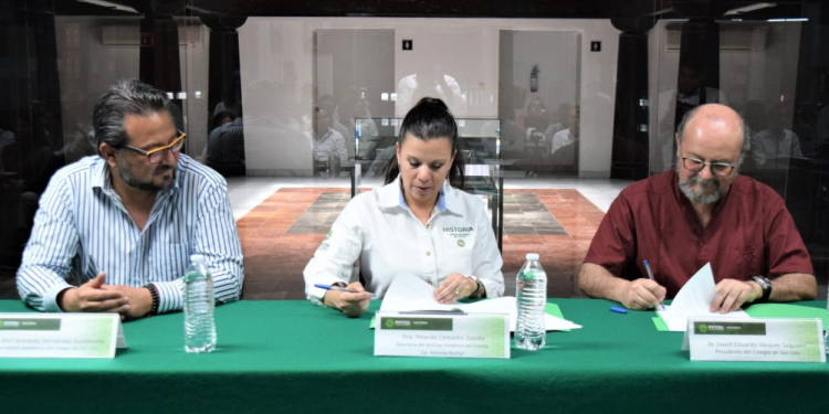 Para hacer sinergia a favor de la aplicación de modernos sistemas informáticos y nuevas tecnologías en el trabajo que realiza el Gobierno del cambio que lidera Ricardo Gallardo Cardona, el Archivo Histórico del Estado “Lic. Antonio Rocha”, firmó un convenio de colaboración con el Colegio de San Luis (Colsan), con el que se implementarán acciones conjuntas para la transformación de la práctica archivística en San Luis Potosí.