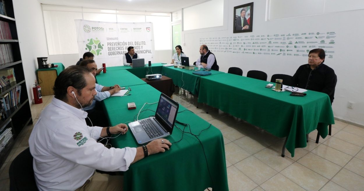 Agregó que con más capacitación a los ayuntamientos, San Luis Potosí ya despegó en profesionalización de las y los servidores públicos para mejorar el trabajo que se brinda a la población de las cuatro regiones y recordó que este seminario busca fortalecer institucionalmente a los cuerpos de seguridad y áreas jurídicas de los municipios potosinos.