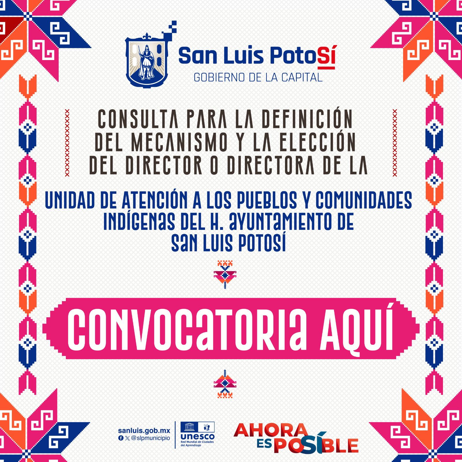 –  Las bases completas se pueden consultar en: https://sitio.sanluis.gob.mx/ConvocatoriaConsultaIndigena/