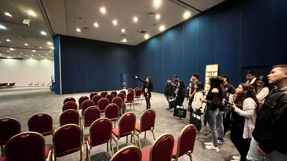 Las y los alumnos universitarios, sostuvieron un encuentro con personal de la Secretaría de Turismo (Sectur) y visitaron las instalaciones del Centro de Convenciones de San Luis Potosí (CCSLP), para observar la riqueza con la que cuenta la entidad, además de las razones por las que es un destino atractivo para eventos y el funcionamiento de un recinto de reuniones.