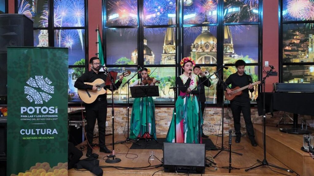 Uno de los momentos más destacados del encuentro fue la presentación de las comparsas, el Trío Mujeres del Son y del ensamble Amor por México, quienes hicieron gala de la riqueza cultural de San Luis Potosí.