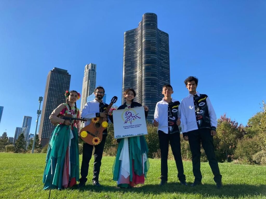 En una presentación mágica y festiva, como parte del apoyo a las expresiones artísticas de las y los potosinos, del 18 al 20 de octubre el ensamble “Amor por México” integrado por alumnas y alumnos de la escuela de iniciación musical “Julián Carrillo” de la Secretaría de Educación de Gobierno del Estado (SEGE) hicieron a vibrar a familias mexicanas y estadounidenses en el Festival de Xantolo en Chicago, Illinois.
