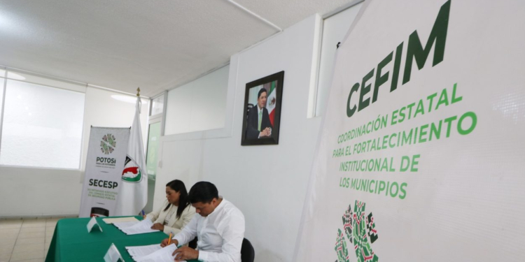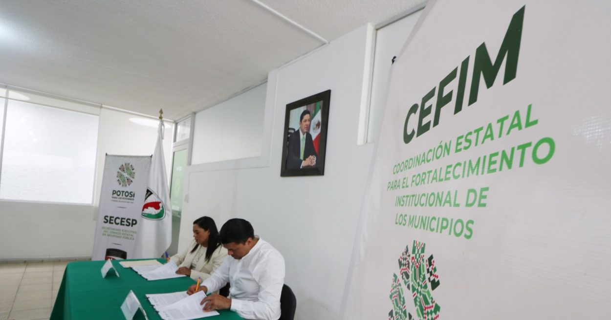 La Coordinación Estatal para el Fortalecimiento Institucional de los Municipios (CEFIM) y el Secretariado Ejecutivo del Consejo Estatal de Seguridad Pública de San Luis Potosí (SECESP), firmaron un convenio de colaboración en apoyo a los municipios para fortalecer la seguridad pública mediante la capacitación de servidores públicos municipales.