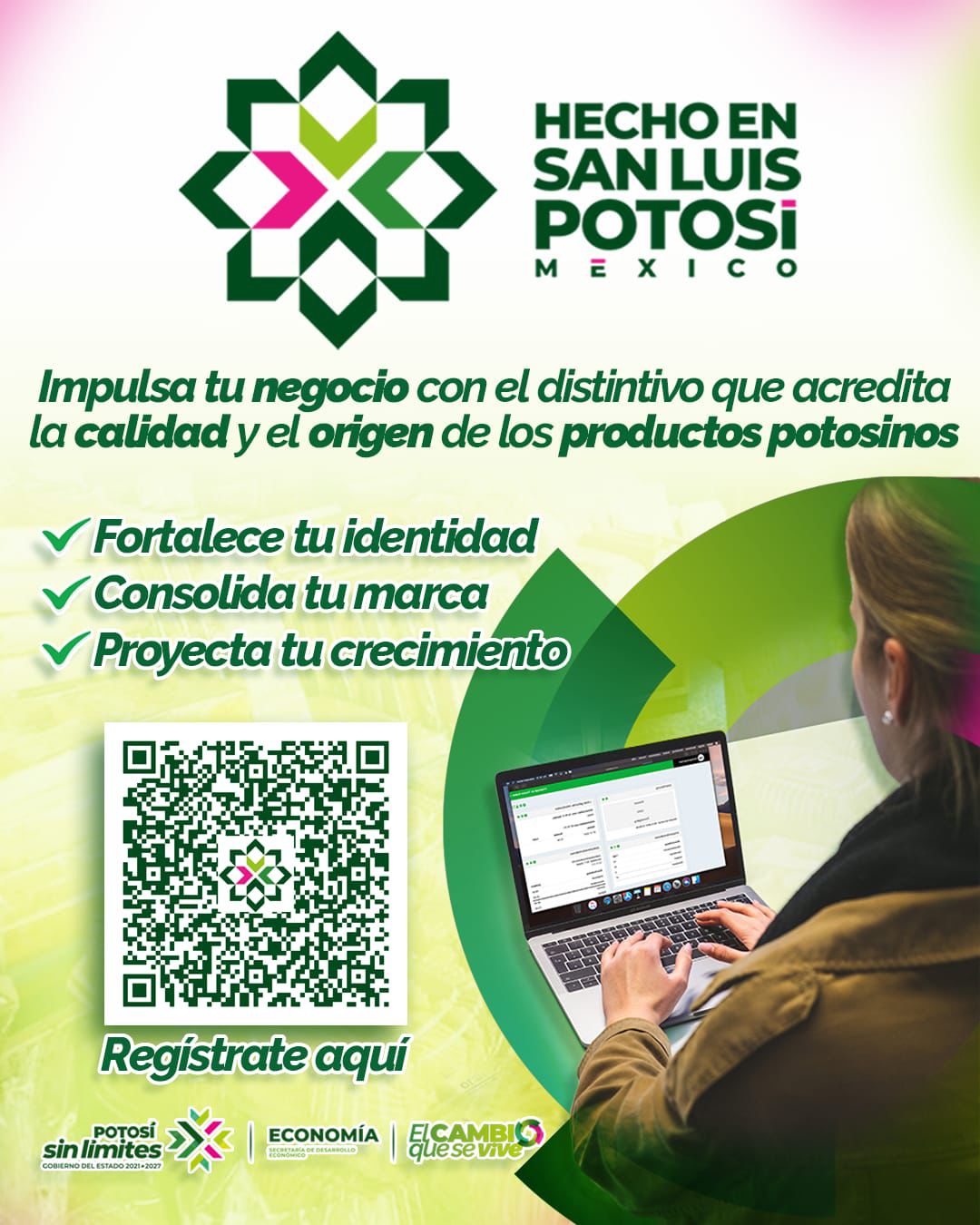 Cumpliendo con el compromiso del Gobernador Ricardo Gallardo Cardona de impulsar el crecimiento económico y abrir mayores oportunidades para las y los productores potosinos, la Secretaría de Desarrollo Económico (Sedeco) mantiene abierta la convocatoria para integrarse al distintivo “Hecho en San Luis Potosí, México”, que brinda impulso sin límites al talento local y fortalece su proyección.