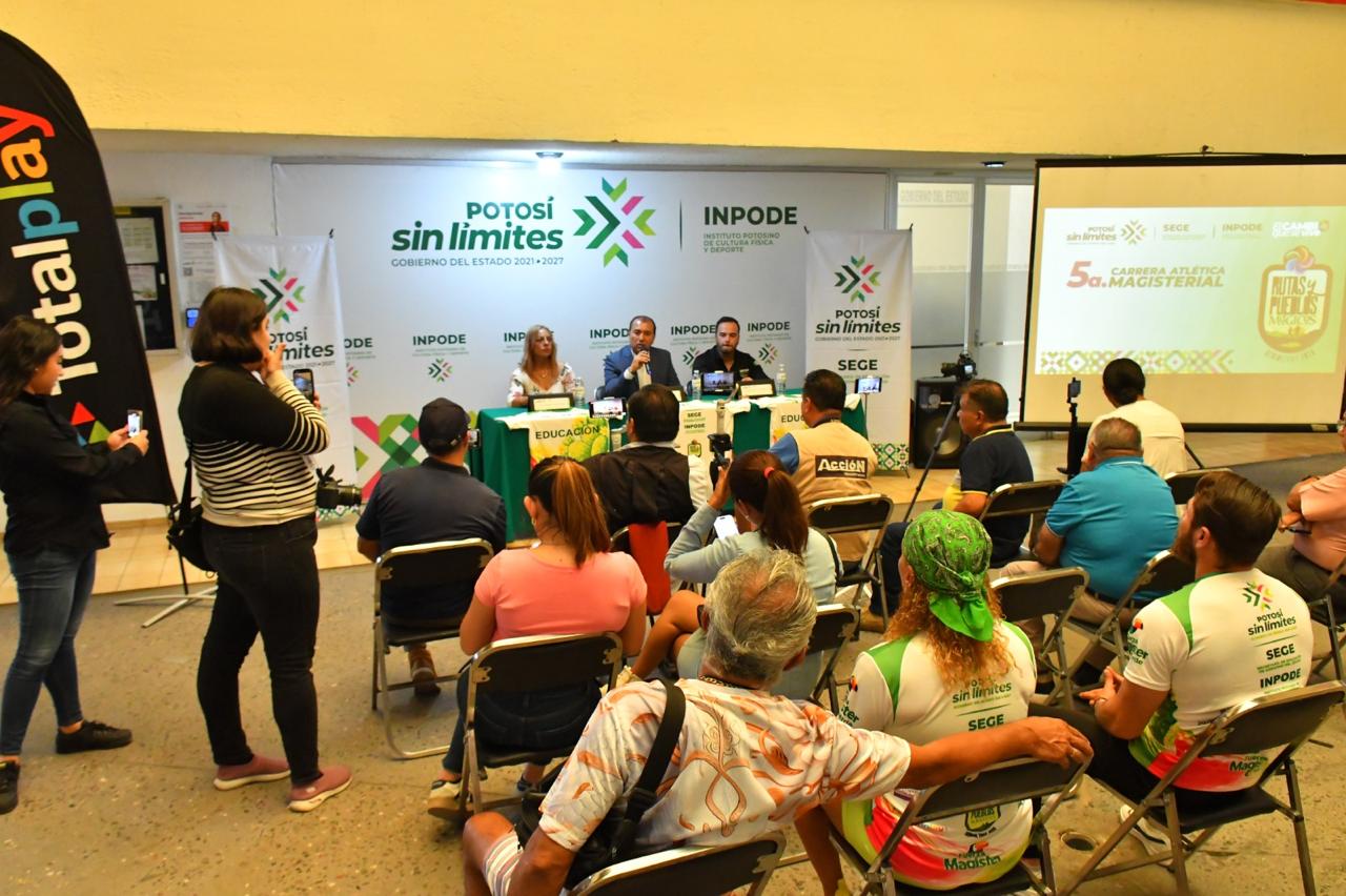 Como parte del impulso del Gobernador Ricardo Gallardo Cardona al deporte, la convivencia y la promoción de las regiones potosinas, la Secretaría de Educación de Gobierno del Estado (SEGE) y el Instituto Potosino de Cultura Física y Deporte (Inpode) presentaron la 5ª Carrera Atlética Magisterial. El evento fortalece la participación ciudadana y suma esfuerzos para mantener actividades sin límites en favor de la comunidad educativa.