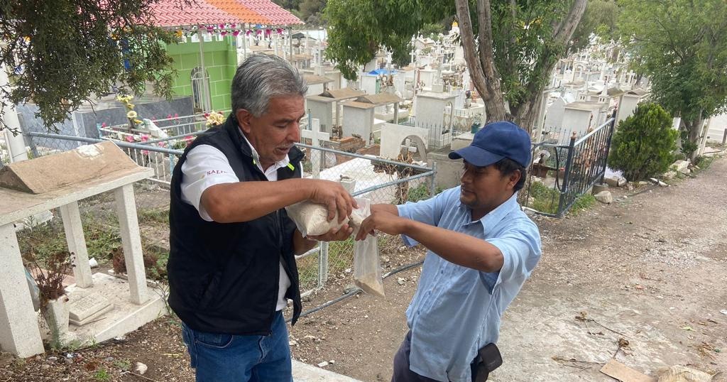Dentro de los panteones es importante destacar el trabajo de saneamiento básico que se están realizando como, limpieza general, lavado de cisternas y fuentes de abastecimiento de agua, cloración del agua, aplicación de abate para disminuir el riesgo por enfermedades transmitidas por la picadura de zancudo, como son dengue, zika y chikungunya, así como la recomendación de utilizar arena en los floreros para disminuir la proliferación de este vector.