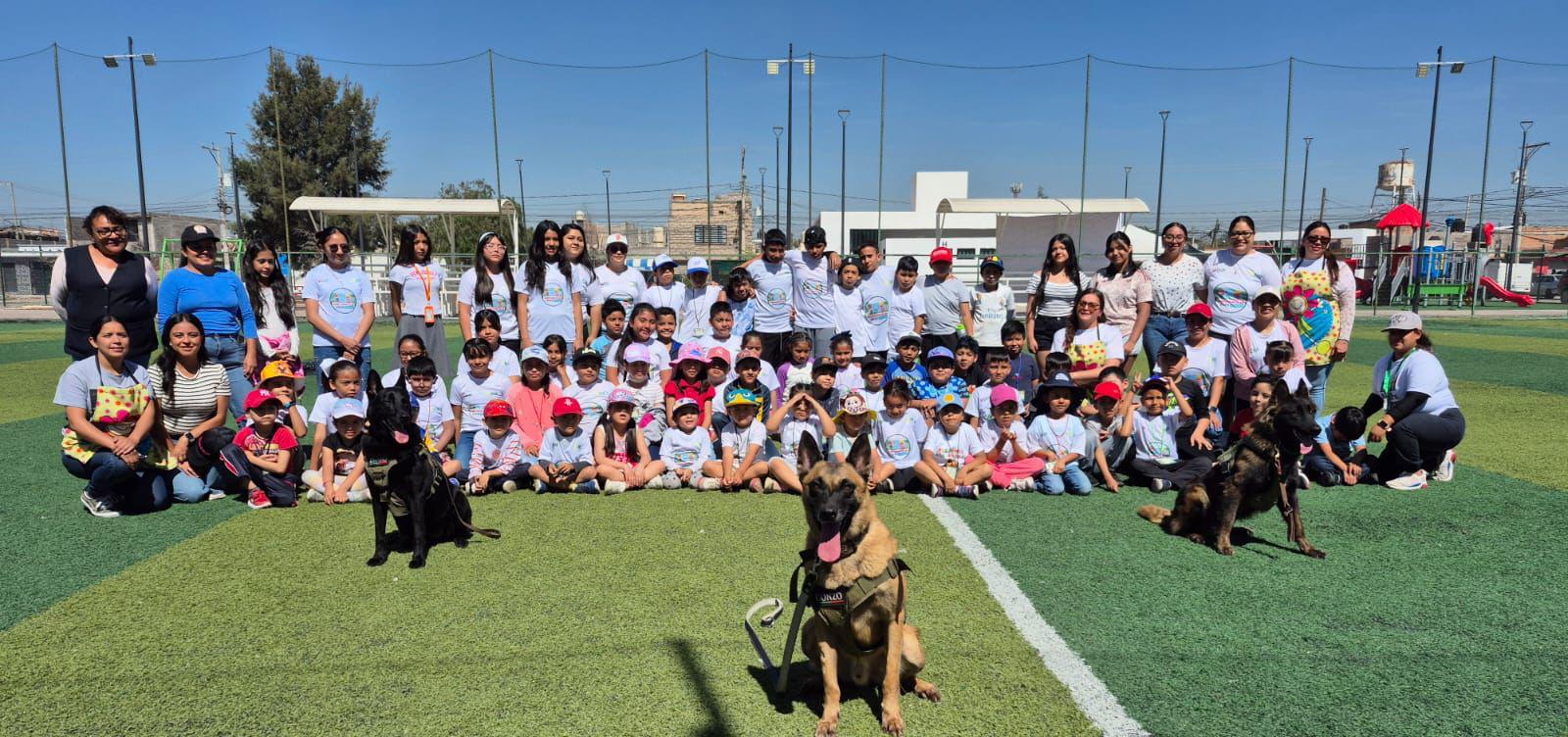 Además, el Agrupamiento K9 tuvo una participación destacada con demostraciones de habilidades caninas y charlas sobre la tenencia responsable de mascotas y el no maltrato animal, en colaboración con la Unidad de Deportes, impactando a más de 400 niñas, niños e instructores en municipios como la capital potosina, Soledad de Graciano Sánchez, Matehuala, Villa de Pozos y Mexquitic de Carmona.
