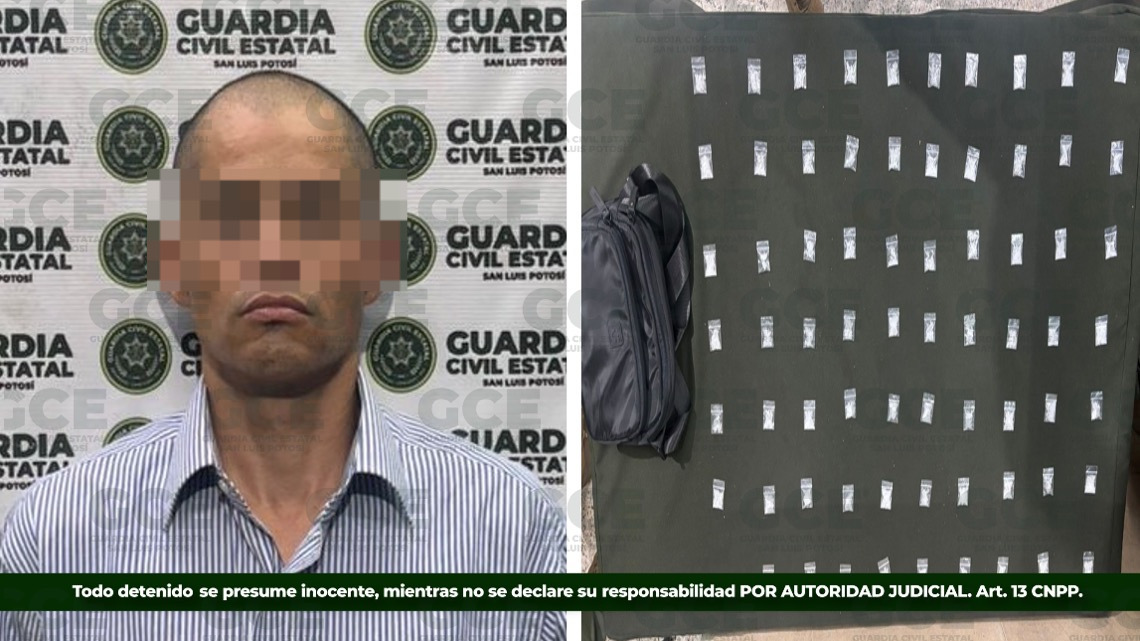 Se le aseguraron 69 dosis de droga conocida como “cristal” en la colonia Jacarandas de la capital potosina, donde presuntamente se dedicaba a distribuir sustancias ilícitas a vendedores.